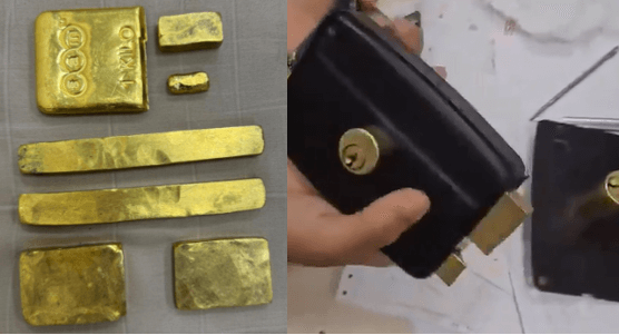 The five gold bars were hidden inside the metallic lock of a door.
